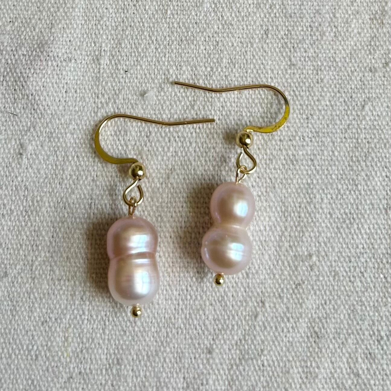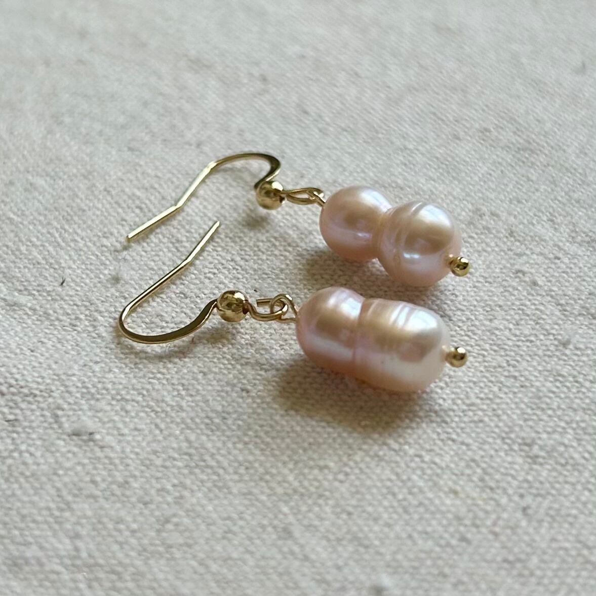 ピンク系/メタリック風にも見えるの天然色の淡水パールです。