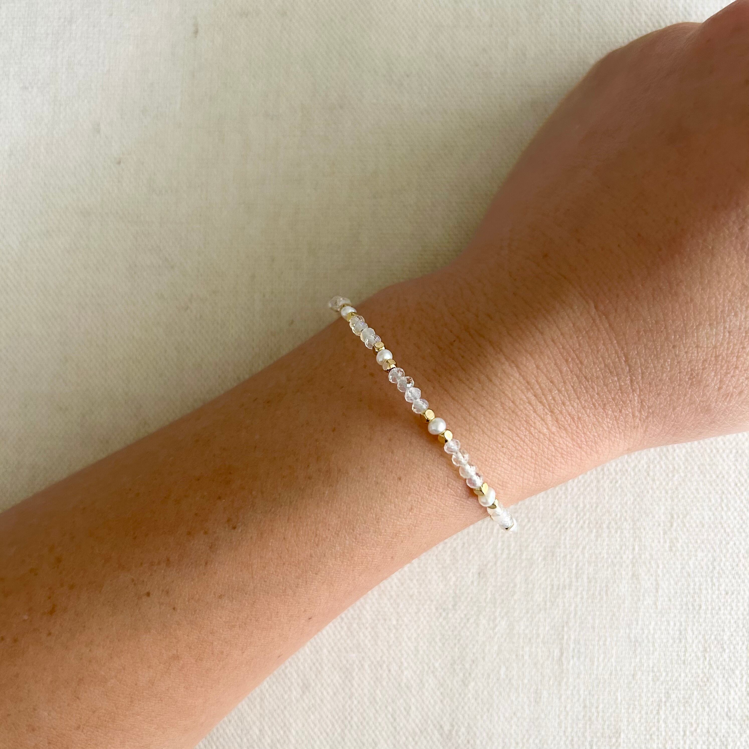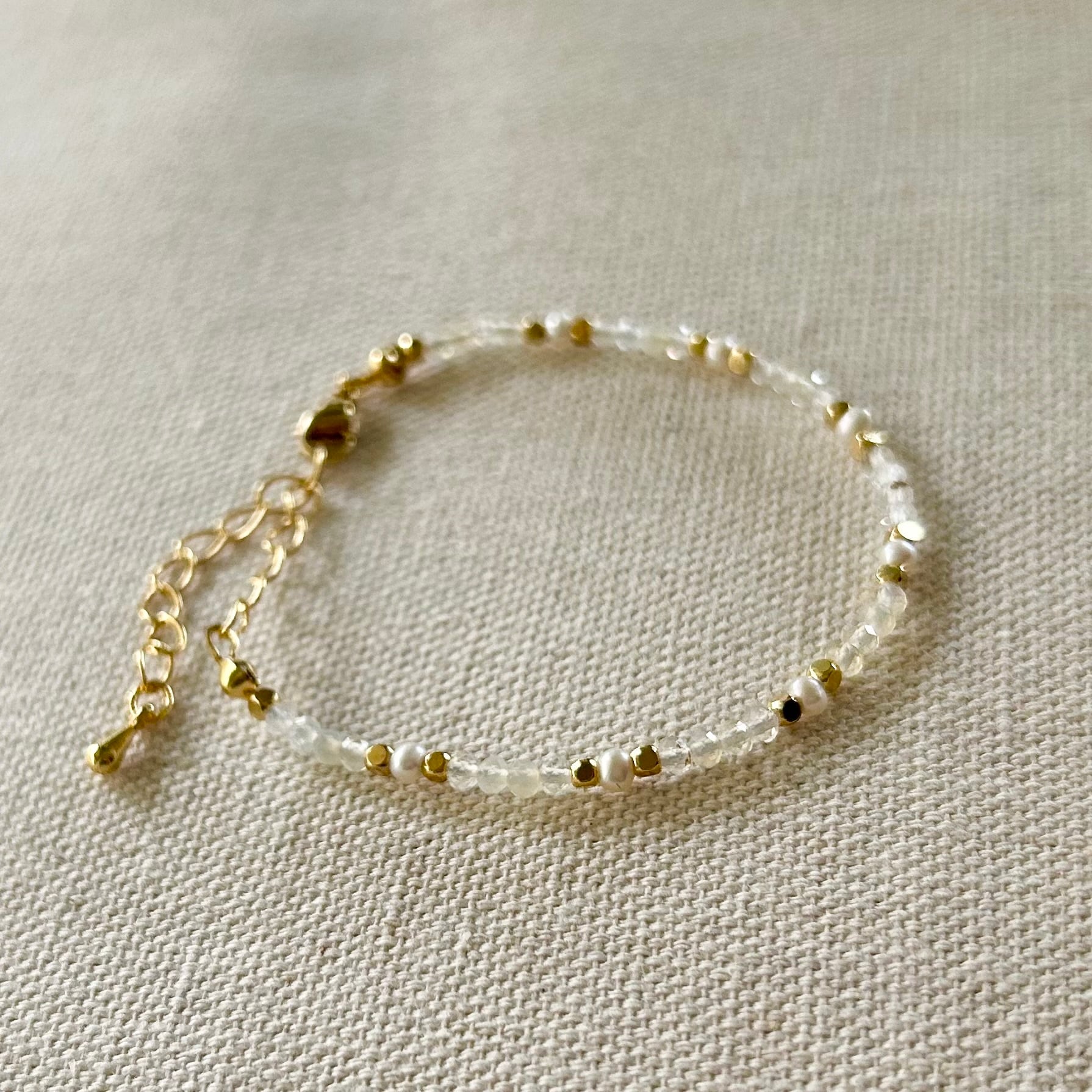 宝石質のボタンカット、エチオピアンオパールを主役に、淡水パールと18kgpゴールドビーズを組み合わせました✨
