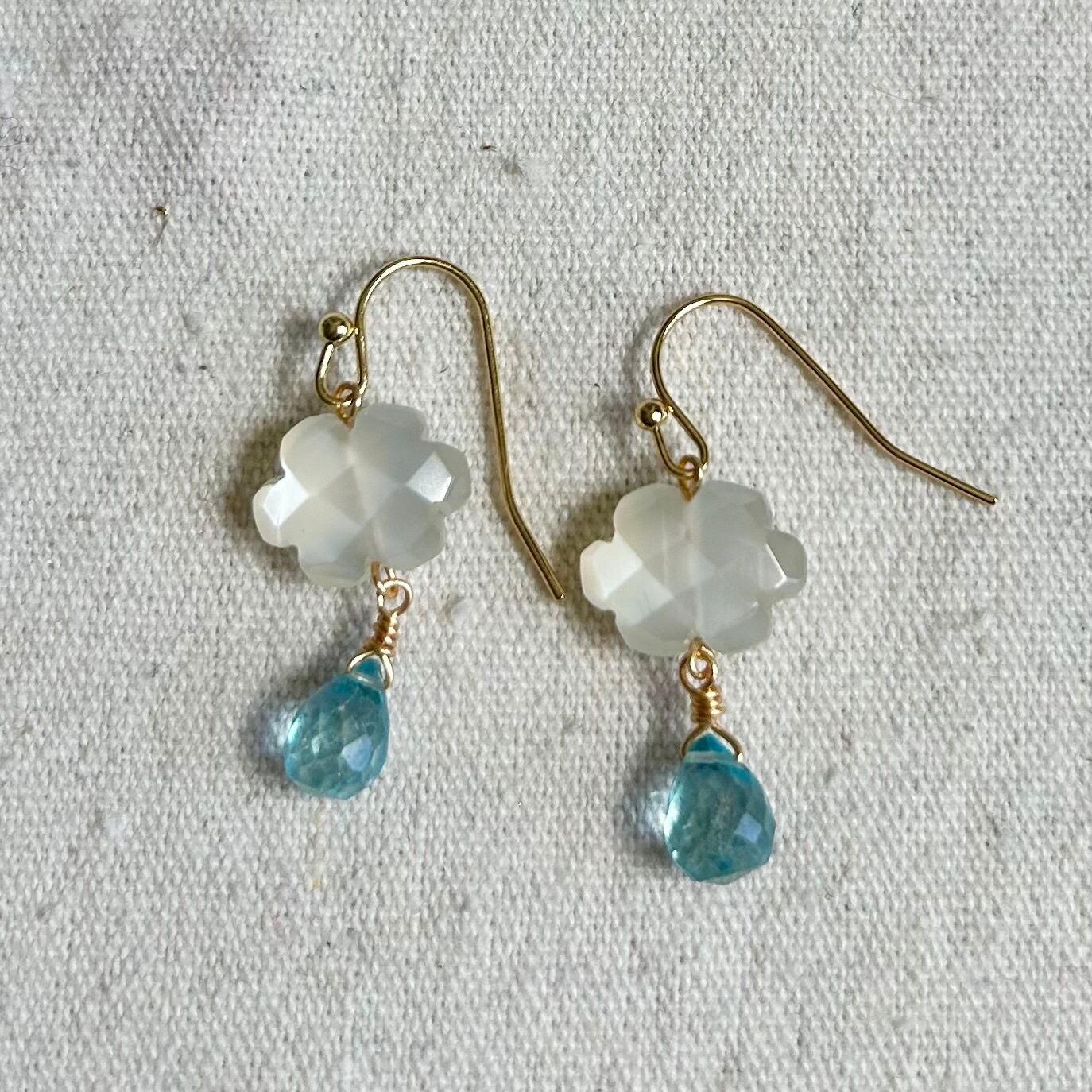 ♦White Moon Stone & Topaz Earrings -18kgp♦