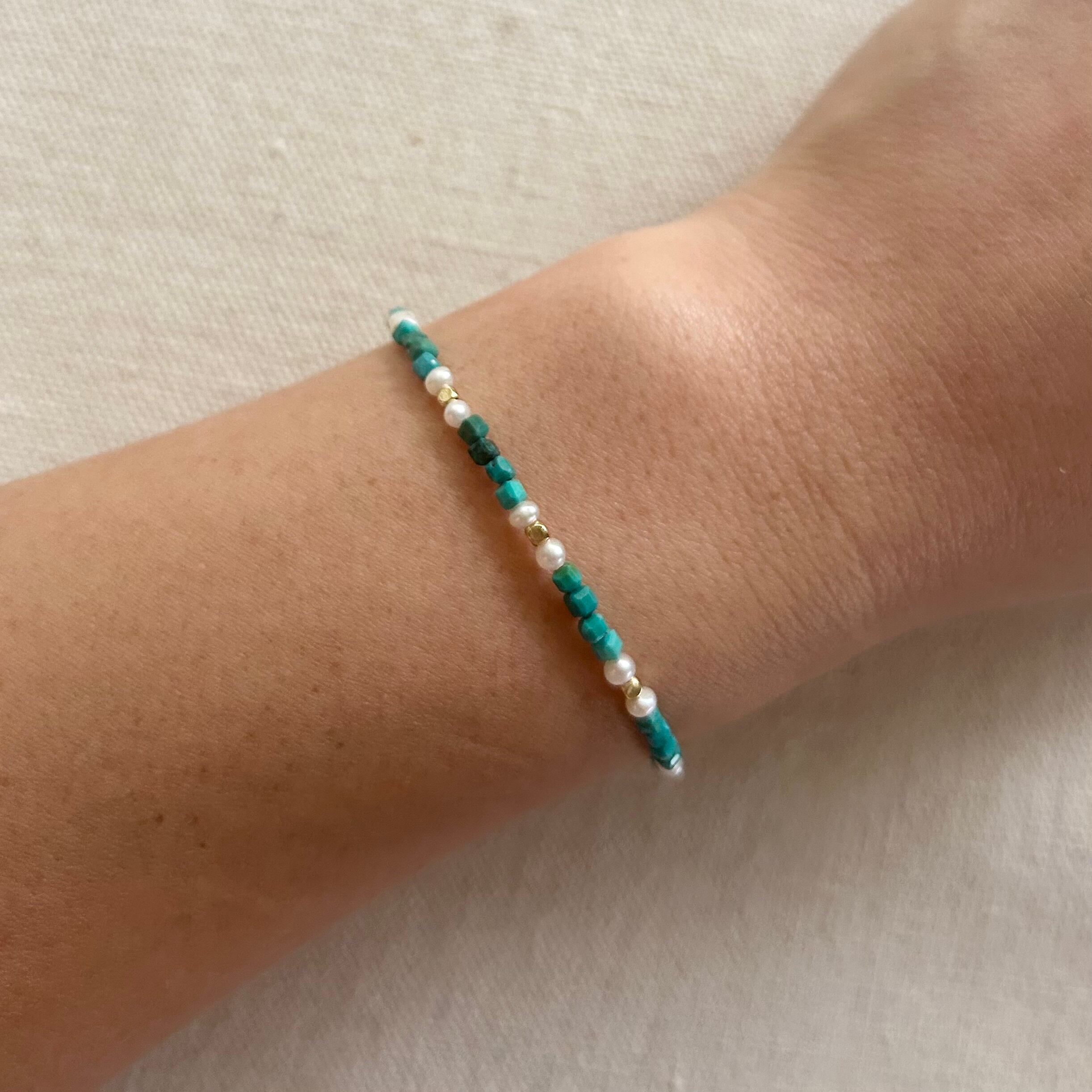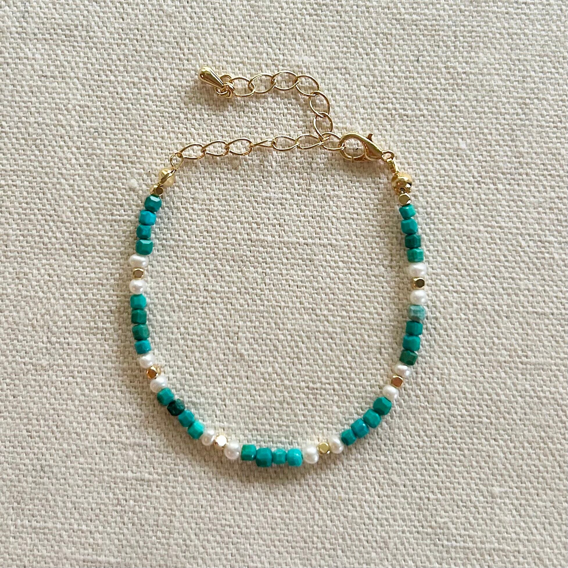 ♦Magnesite Turquoise & Fresh Water Pearl Bracelet - 18kgp coated metal♦
