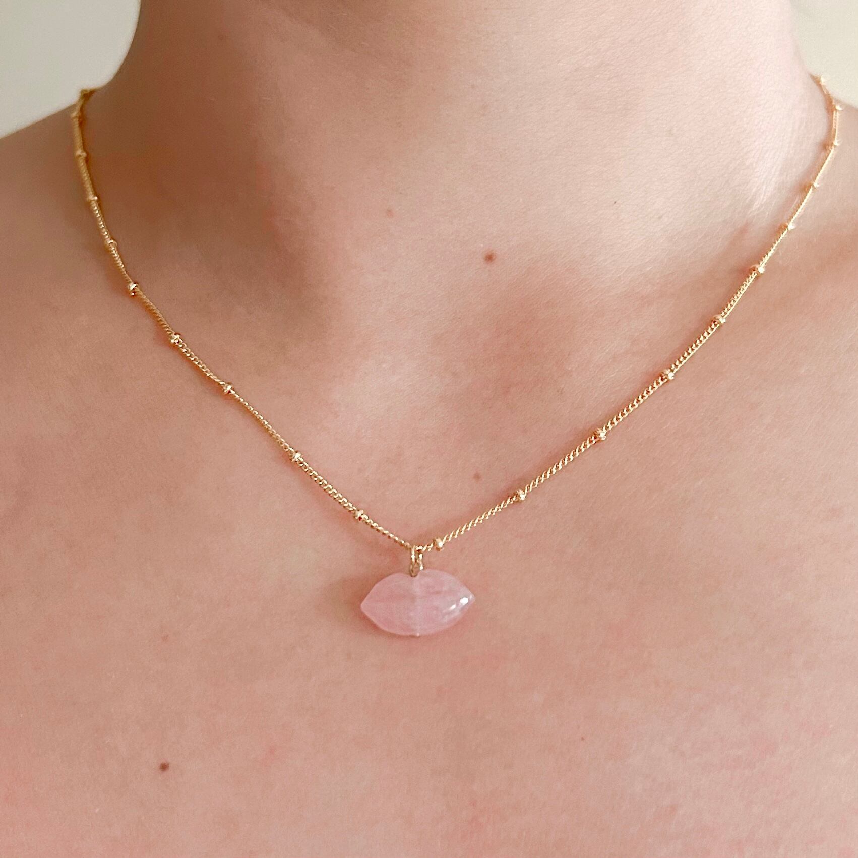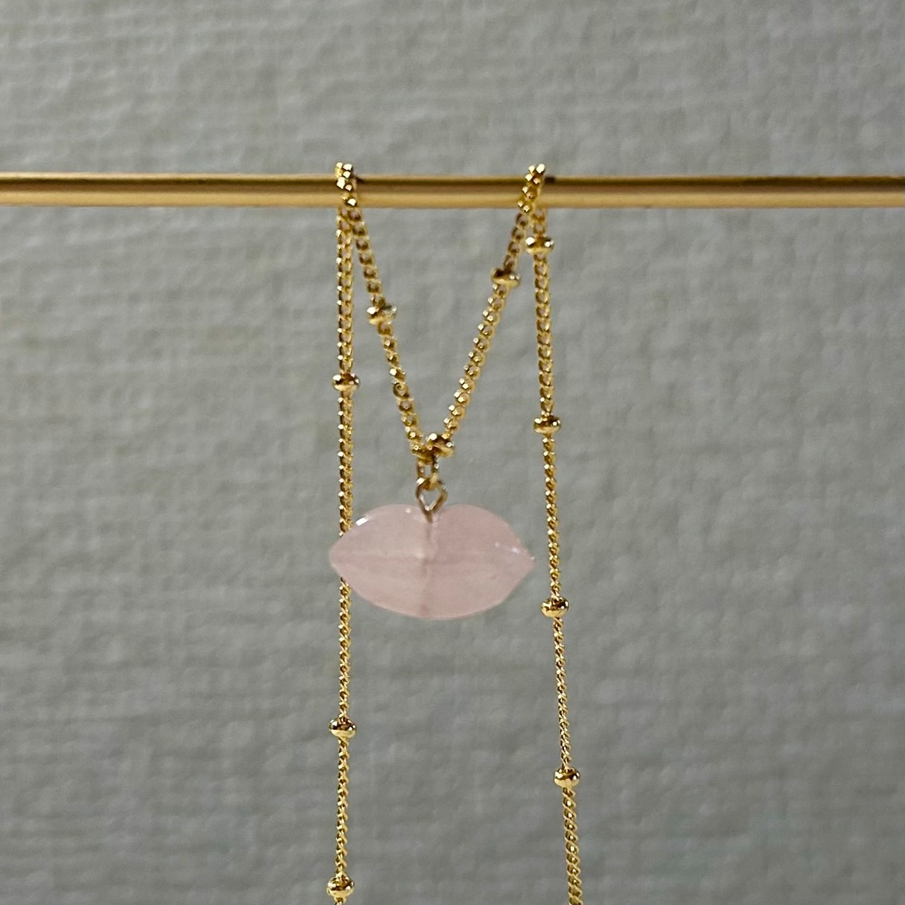 ♦Rose Quartz Lip Necklace - 18kgp coated metal♦