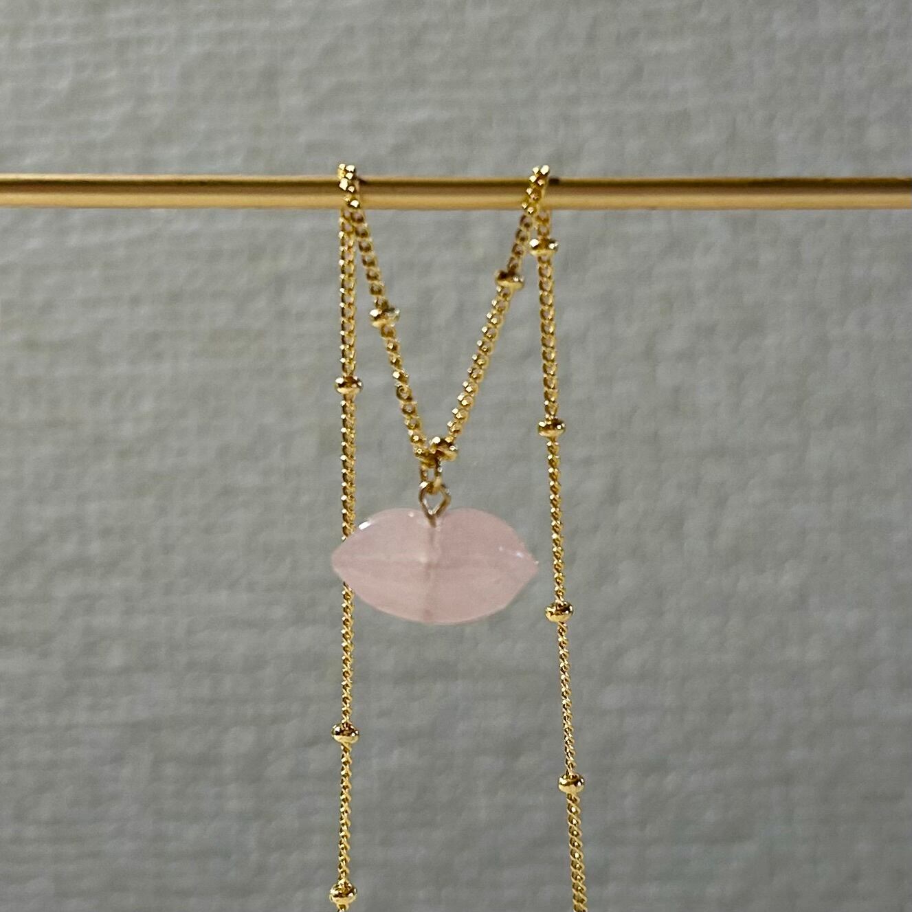 Rose Quartz ローズクォーツ くちびるネックレス 18kgp