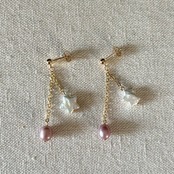 ちょっといびつな形もかわいすぎる、星型と落ち着いたパープルのパールピアスです♥